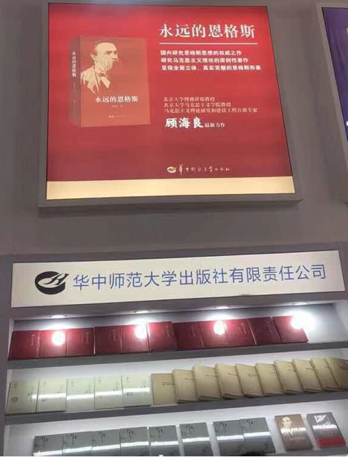 我社展台布局高雅,以学术出版中心的著作为主打,争取最大的社会效益,其中《永远的恩格斯》作为主打品牌,隆重推出。《王先霈文集》《陶行知学文库》《中国农村调查》等大部头一字排开,大气磅礴,吸引了不少读者驻足。