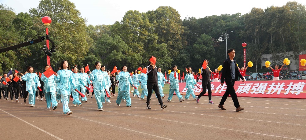 运动会不仅是一场运动的较量,更是运动员团结合作、积极向上的精神风貌的体现。本次运动会的教工组团体比赛延续了参与性和趣味性为主的比赛风格,取消了个人竞技项目,既有教工太极扇表演,也有跳长绳、陆地龙舟、雷霆战鼓、谱写华章等团体比赛项目。