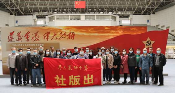 为贯彻习近平总书记关于学习“四史”的重要论述,纪念红军长征胜利84周年,10月28日上午,出版社党委组织在职教职工到佑铭体育馆观看《长征与遵义会议——行进中的遵义会议纪念馆主题展览》。