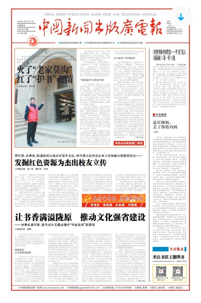 在党的100周年华诞之际,出版社开展“百年初心耀征程 红色经典书华章”系列活动,结合华中师范大学的红色传统,大力发掘红色资源,策划出版《荆楚文库·恽代英集》《追忆峥嵘岁月 重温百年党史》《华师百年历史上的红色记忆》《永远的黄河大合唱》《父辈的奋斗岁月》等,用出版精品反映党的光辉历史、讴歌英雄模范人物,传承红色基因。这种做法得到《中国新闻出版广电报》头版“学党史 悟思想 办实事 开新局”栏目专门报道,题为《华中师大社将党史学习与精品出版紧密结合 发掘红色资源为杰出校友立传》。出版社出版的主题图书《永远的恩格斯》先后入选国家出版基金项目和“丝路书香工程”,《永远的黄河大合唱》出版讯息登上央视网、人民网、新华网等。