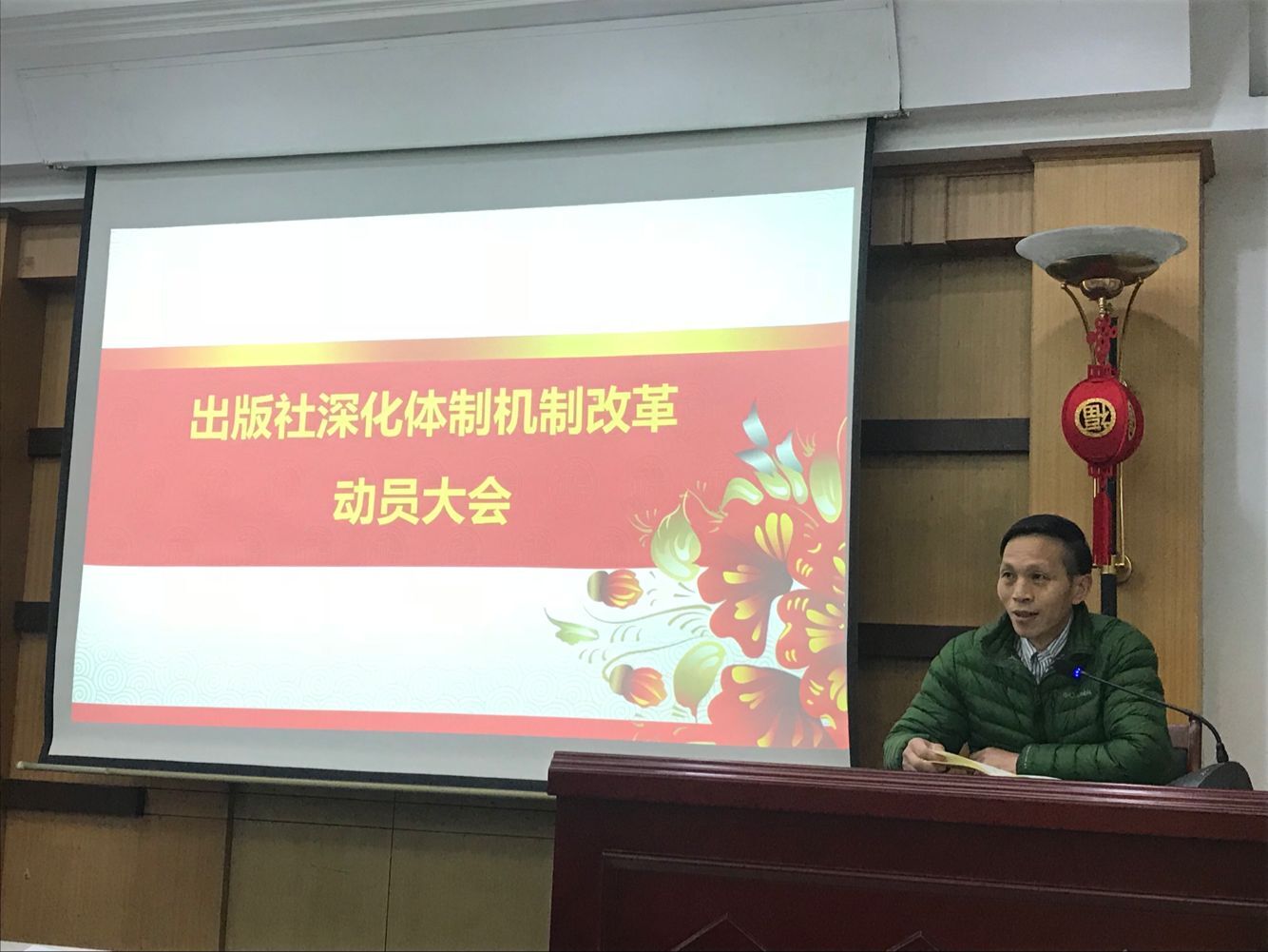 3月16日,我社在一楼多功能厅召开“深化体制机制改革动员大会”,学习出版社体制机制改革方案的具体内容,并部署后续工作。会议由出版社分党委书记、董事长张小新主持,全体职工参加了此次会议。