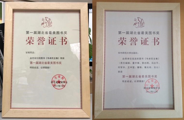 在颁奖环节,我社《韦卓民全集》荣膺“湖北省首届最美图书”。这套著名哲学家、翻译家、教育家韦卓民先生学术成就的集大成之作,历时20余载整理推出,以11卷720万字的厚重、精良的编校和庄重雅致的装帧设计在年度众多图书中脱颖而出,赢得专家学者的喜爱。