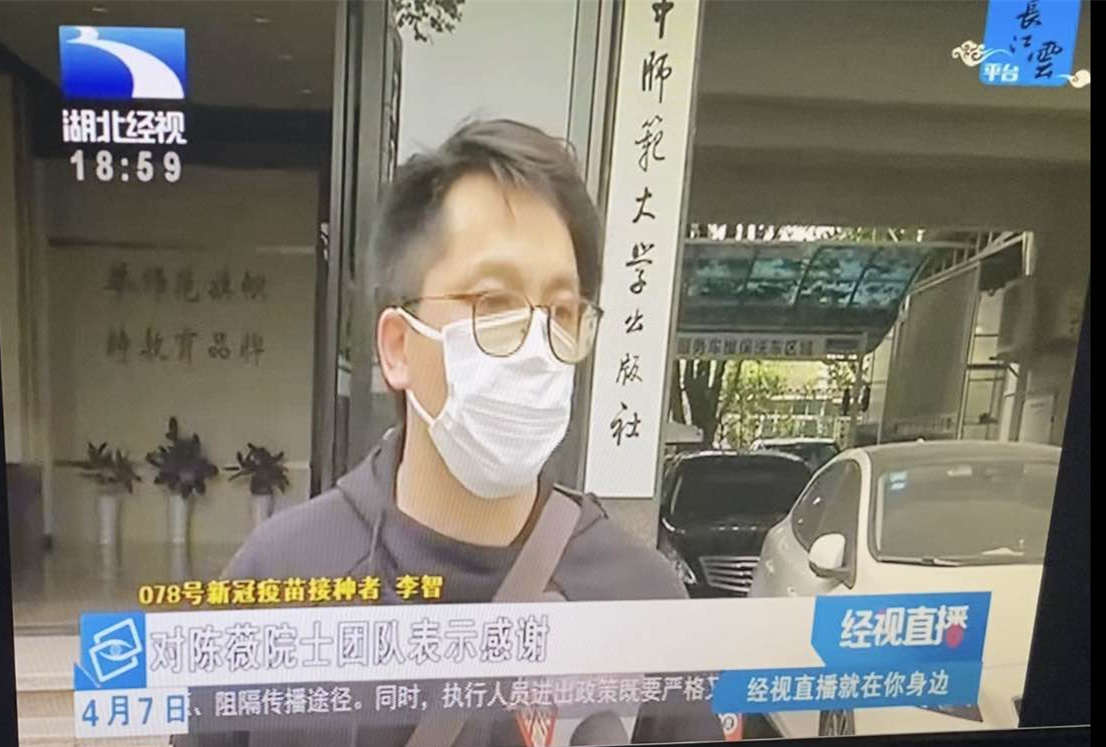 3月24日,李智的左右臂分别注射了重组新冠疫苗。李智希望疫苗能够早日试验成功,让更多的人受益,早日战胜病毒,他也期待武汉早点恢复往日的繁华。