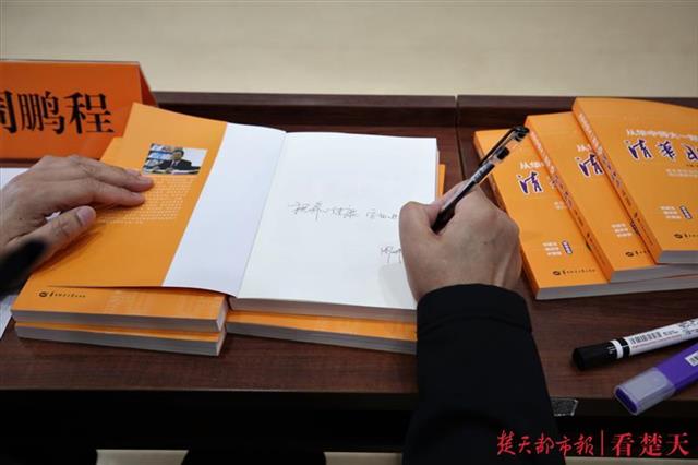 听说疫苗志愿者牵线要把自己主编的图书送给医护人员,华中师大一附中的周鹏程校长欣然答应到中南医院签名赠书。“祝身心健康,学业进步!”“捐赠仪式现场,周校长在扉页写上给孩子们的寄语,并签上自己的名字。