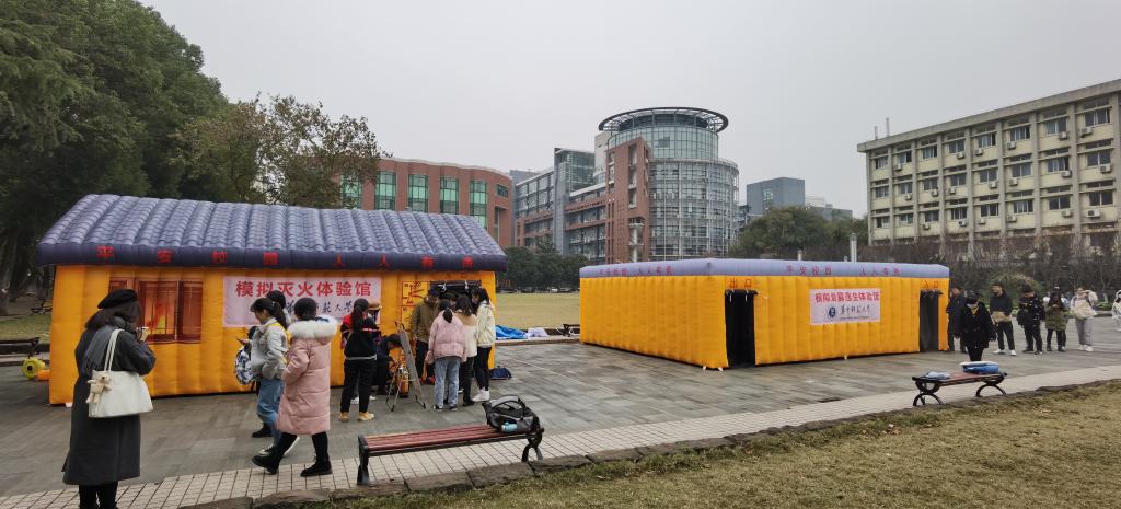 此次演练主要以体验的形式开展,让员工身临其境地学习消防安全知识,掌握疏散逃生的技巧。现场设有两个体验馆:模拟烟雾逃生体验馆和模拟灭火体验馆。我社员工进入模拟烟雾逃生体验馆后,戴着口罩或捂住口鼻(有条件的情况下,可用湿毛巾捂住口鼻),弯腰小步快走,从体验馆里经过层层障碍迅速疏散到室外,掌握了基本逃生技能。在进入模拟灭火体验馆前,保卫处工作人员告知参加体验的员工如何使用手持灭火器:拔销子,提罐子,拉管子,压把子,扫根子。体验馆入口还有详细的手持灭火器使用图解,我社员工进入体验馆后用手持灭火器扑灭模拟火源。