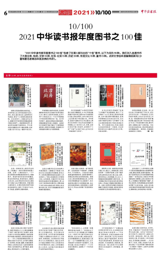 《中华读书报》年度百佳图书评选活动已开展十余年,在业界有较大影响。此次选书的范围是2020年12月至2021年11月在内地首次公开出版发行的图书,评选着重考量人文性,思想性,独创性,品质,趣味等因素,亦参考学界和读者口碑。(文字/白炜)