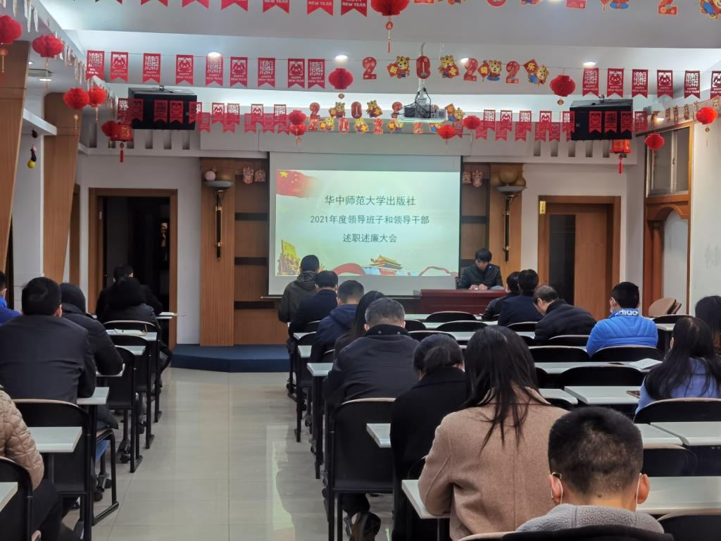 3月25日上午,出版社2021年度领导班子和领导干部述职述廉大会在一楼多功能厅召开。班子成员、党支部书记、工会委员、老中青职工代表等与会。社长周挥辉主持会议。