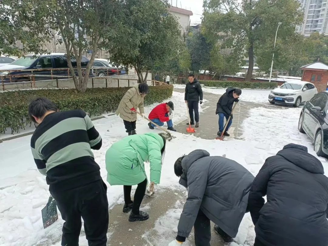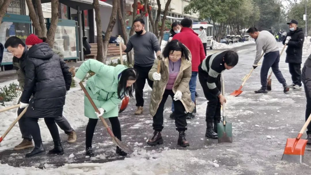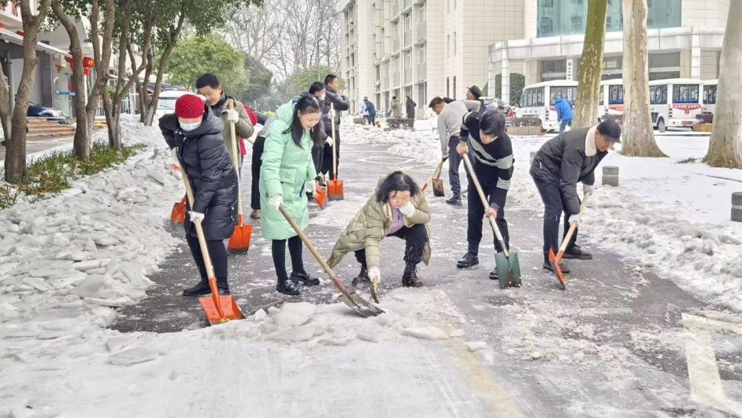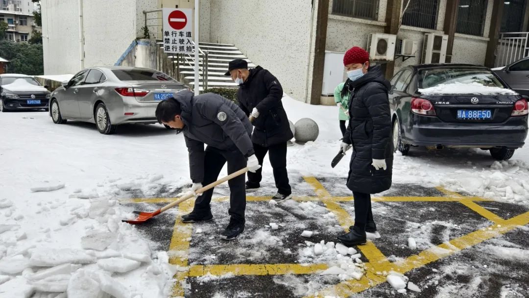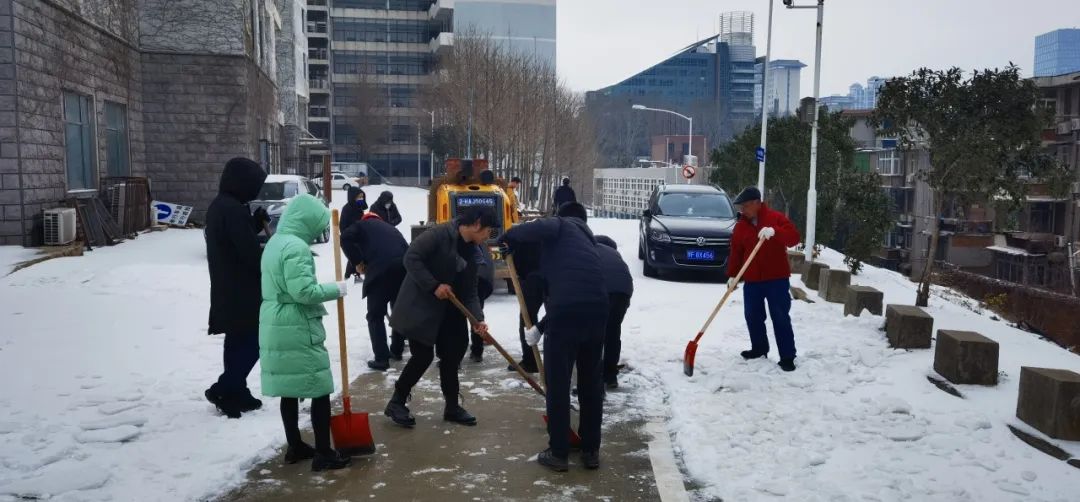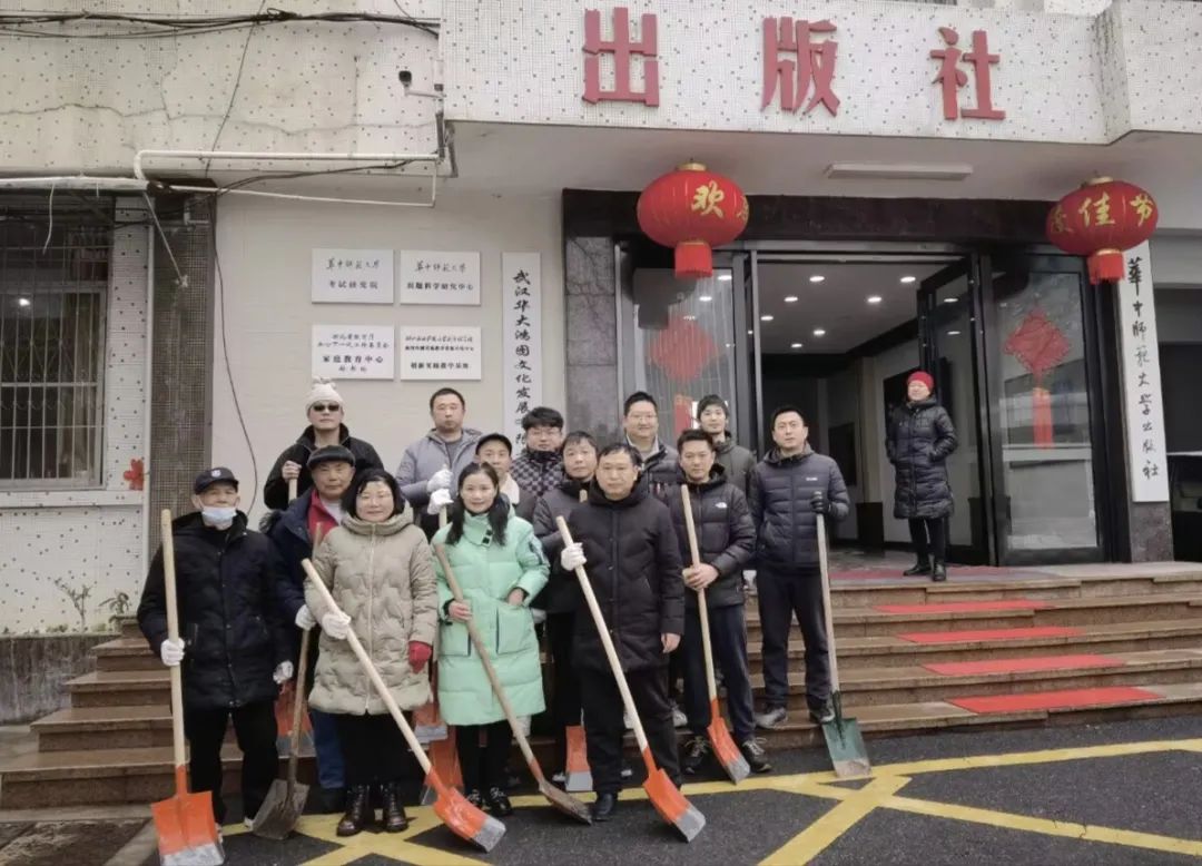 为应对冰雪天气,出版社党委和领导班子经研究做出居家办公的安排部署,并积极组织开展铲雪除冰工作。