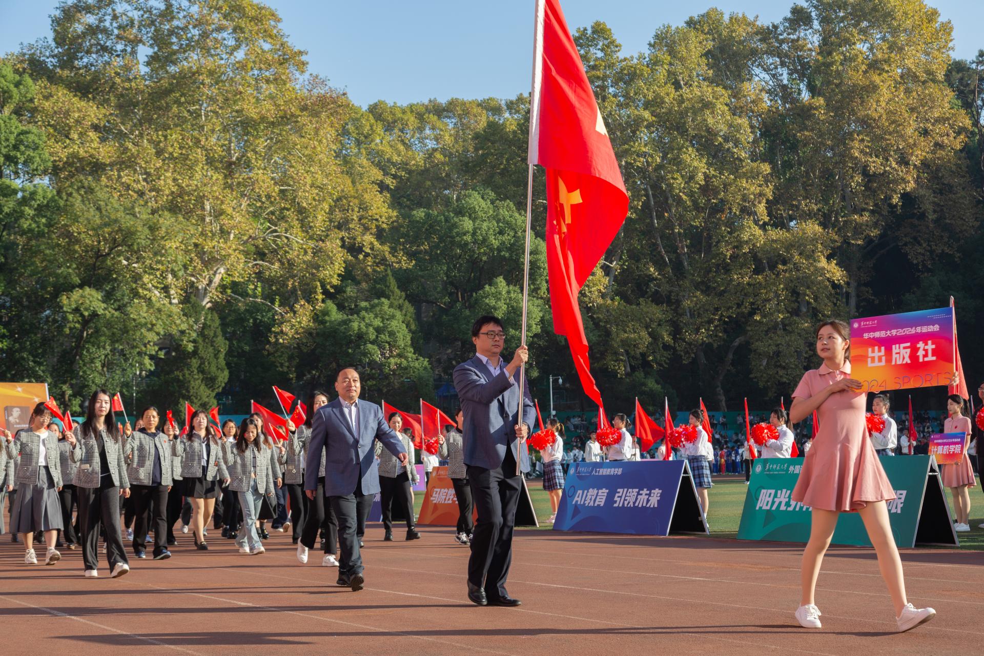 隆重的开幕式上,出版社代表队举着红旗,抬着印刷有近年荣获湖北省出版政府奖的《韦卓民全集》《章开沅文集》《邢福义文集》《永远的恩格斯》等图书的宣传牌,昂首阔步走在运动场上,在主席台前齐声喊起“举师范旗帜,铸教育品牌,踔厉奋发,再创辉煌”的嘹亮口号,向全校师生展示了出版人的文化气质与精神风貌。