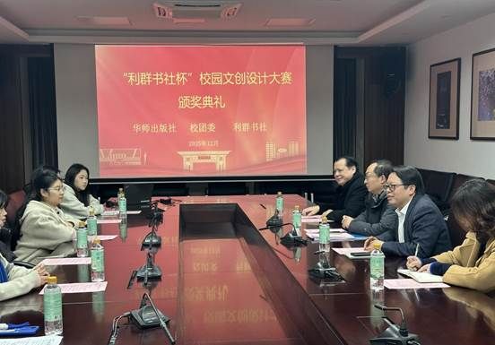 2025年12月31日上午10时,首届“利群书社杯”华中师范大学校园文创设计大赛颁奖典礼在出版社301会议室启幕。本次大赛由出版社、校团委和利群书社联合主办,旨在纪念恽代英同志诞辰130周年、利群书社创立105周年,通过传承与弘扬恽代英精神,进一步丰富校园文化内涵,展现华师文创的独特魅力,激发广大学子的创新思维与设计才华。大赛以创意为桥梁,紧密联结华师深厚的历史底蕴与当代青年的艺术巧思,吸引了众多同学踊跃参与。他们以设计为语言,诠释对校园的深情与理解。我社社长、总编辑付义朝,校团委书记苏晓刚与获奖学生代表齐聚一堂,共同见证这场创意与文化交融、简朴而温馨的颁奖会。颁奖典礼由我社组织员石炜主持。