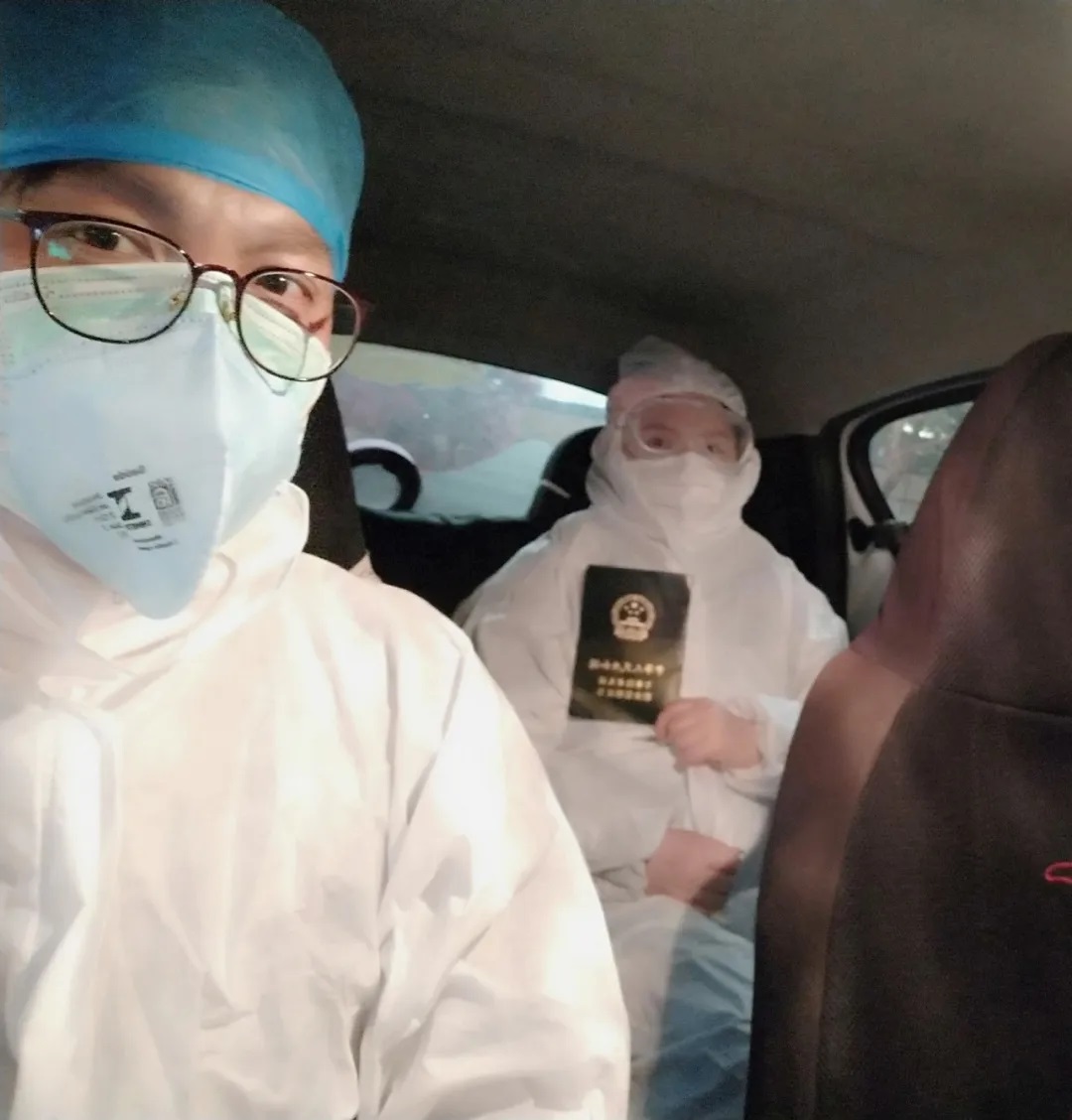 李智接送医护人员上下班时的留影