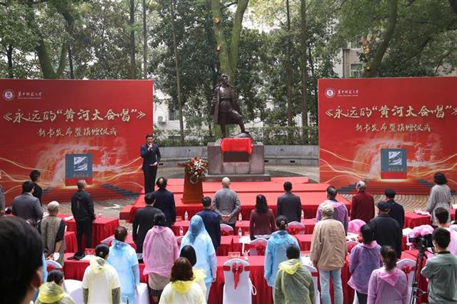 湖北日报讯(记者韩晓玲、通讯员毛军刚、白炜)10月31日,在华中师范大学杜鹃广场的光未然雕像前,举行了一场特殊的新书发布和捐赠仪式。刚刚出版的《永远的“黄河大合唱”》与师生们见面,《黄河大合唱》词作者光未然(原名张光年)的后人向该校图书馆、文学院赠书。
