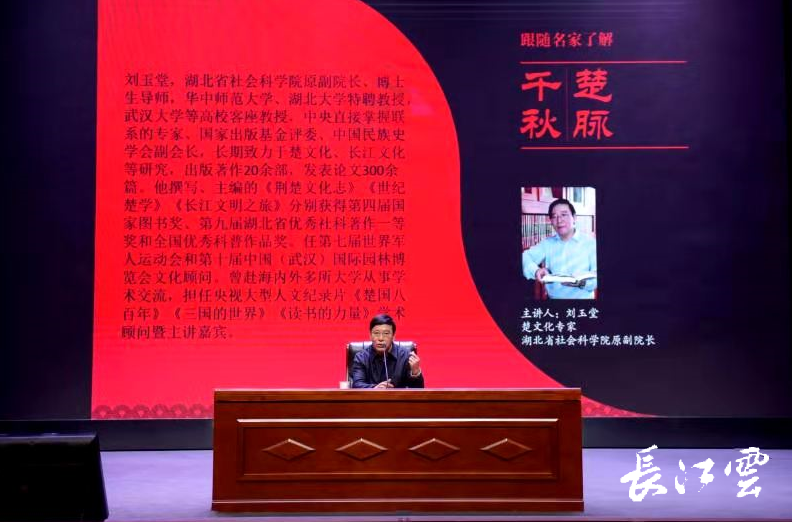 11月10日,著名楚文化专家、湖北省社会科学院原副院长刘玉堂在湖北省图书馆开讲。讲座主题为“楚脉千秋”。数百名观众得以与名家面对面,走近楚文化。