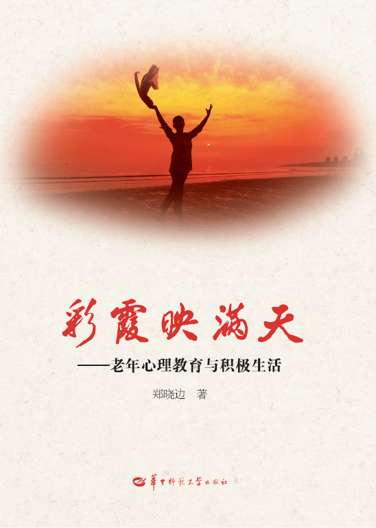 本报讯 华中师范大学出版社出版的老年心理教育领域力作——《彩霞映满天——老年心理教育与积极生活》,是华中师范大学老年心理教育工作与湖北省老年心理学专业委员会的系列研究成果之一。作者郑晓边是华中师范大学心理学教授,现任湖北省老年学学会副会长、老年心理学专业委员会主任、中国老年学和老年医学学会理事等。郑晓边自2016年投身老年心理学研究与服务,撰写过《生活叙事 幸福传承》《生活叙事 生涯如歌》等专著,社会反响良好。经历了2020年的抗击新冠疫情后,郑晓边深深感到老年积极心理学的普及价值和社会意义,于是撰写了这部新作。作者采用心理学叙事方法,展现了他在“老有所学、老有所言、老有所教、老有所乐、老有所悟、老有所为”的老年心理学教学科研与家庭社会服务方面取得的成果。