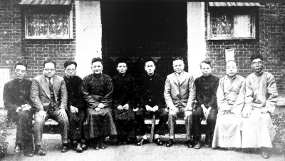 (左六起)陈时与邹昌炽、严士佳、鲁济恒,(左一起)胡竞存、方宗汉、刘绍书等中华大学名师