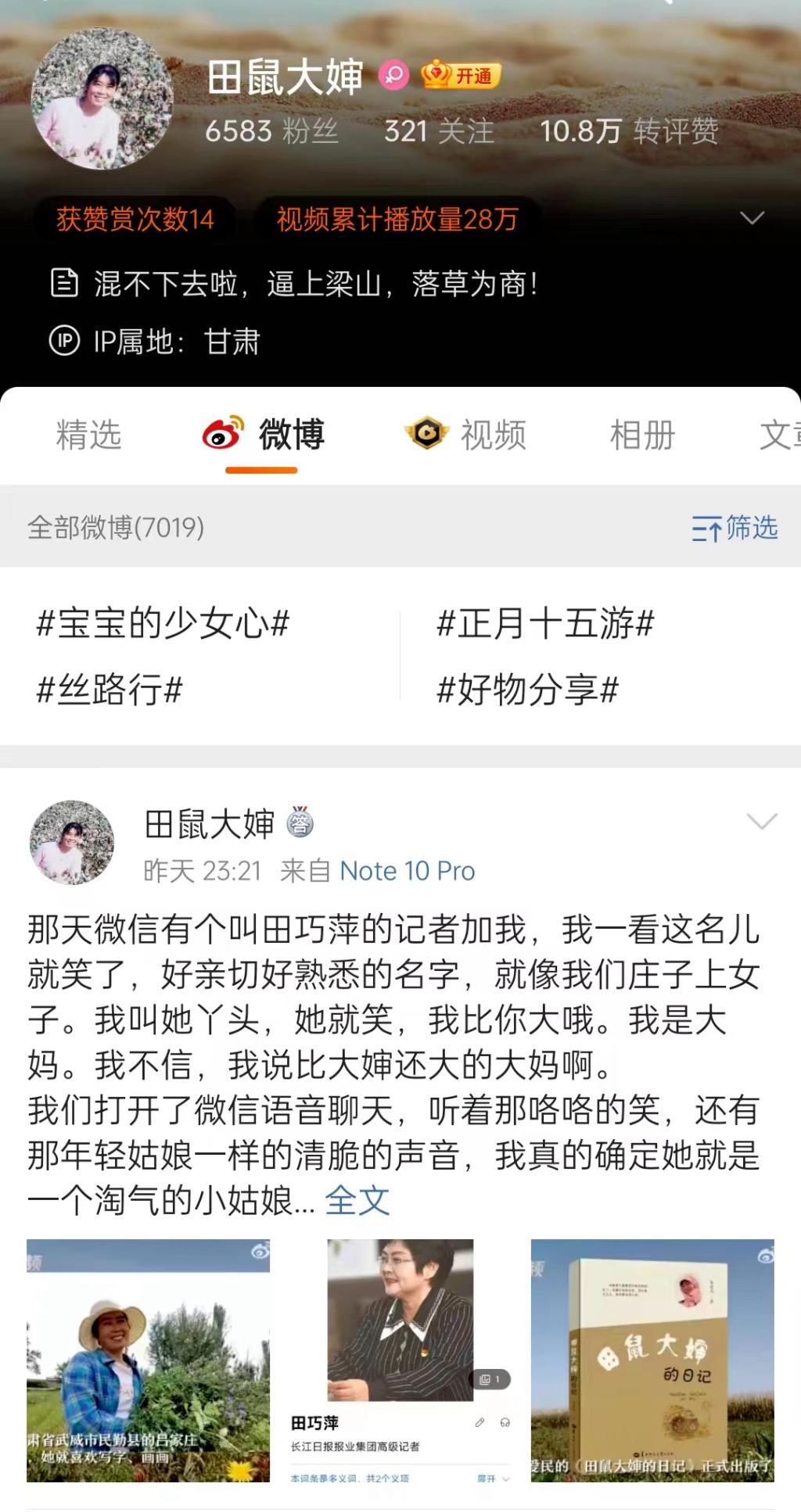 田鼠大婶微博页面。