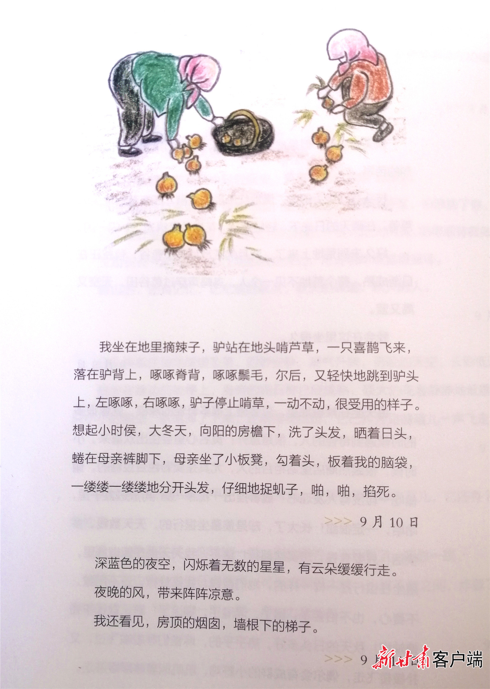 “很多时候,我喜欢干活,宽天阔地里的洒脱!天气真好,吹着小风,我们谁干谁的活儿,不说话,也有无尽的喜悦。”“我头发凌乱,粘了草渣,我的眼睫毛落满了灰尘,我的衣裳陈旧,我的手掌生着老茧,可那又有什么关系呢,我的眼神是明亮的,我的心是欢喜的,我双手捧着我最漂亮的苞谷,献给我亲爱的祖国。”