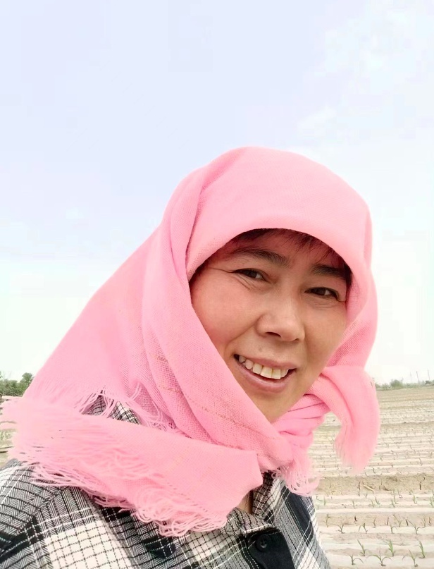 出版社要裴爱民的照片,她没有现成的,就站在干活的玉米地头,自拍了一张。头巾是沙漠里的女子出门必备,防日头,防风沙。