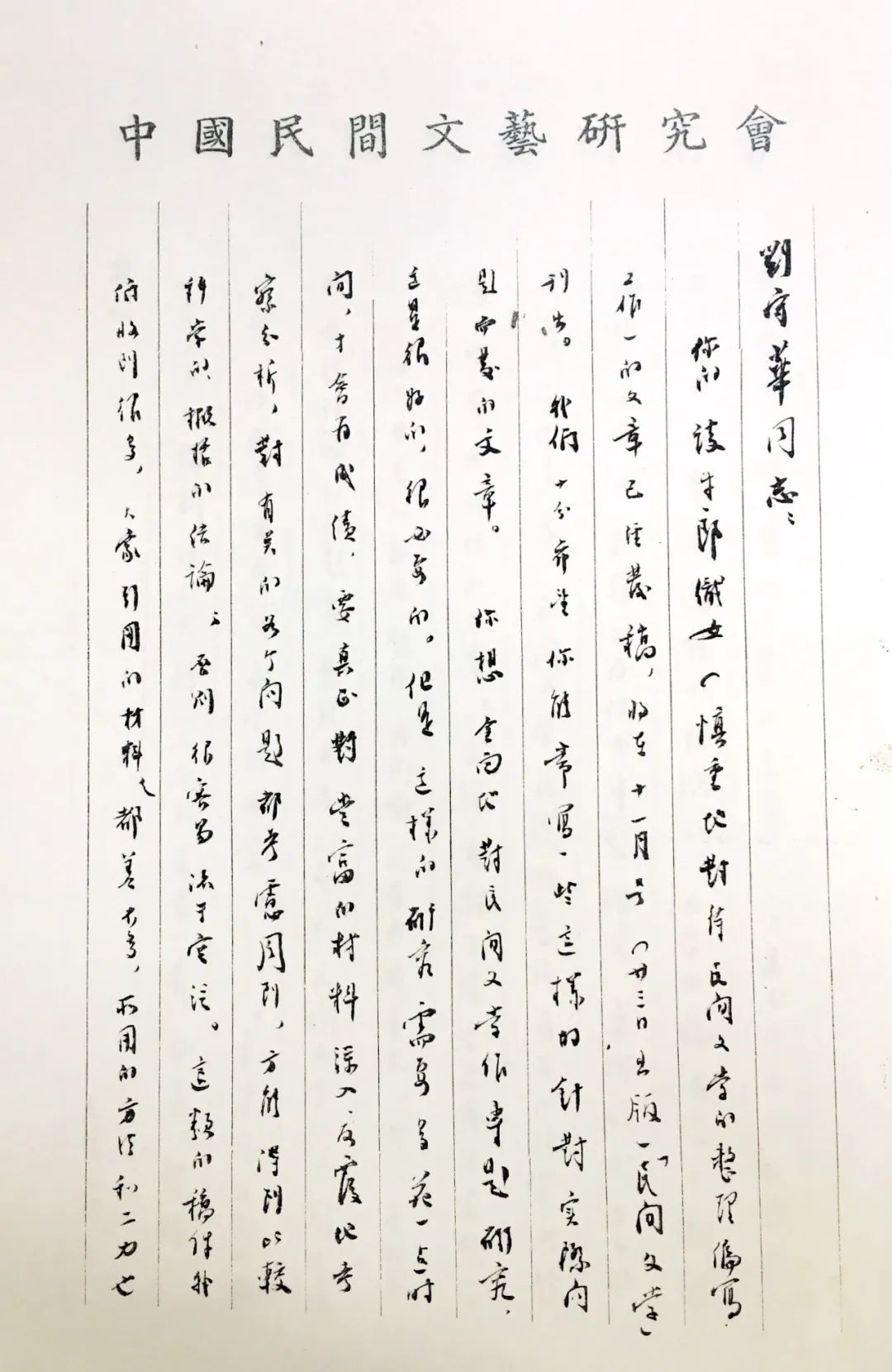 △《民间文学》杂志编辑1956年11月就刊发《慎重地对待民间故事的整理编写工作》一稿致刘守华的信