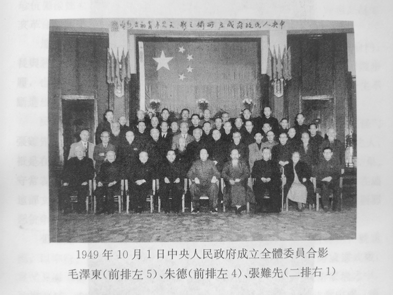 资料图为1949年10月1日,中华人民共和国中央人民政府委员会全体委员在北京合影。