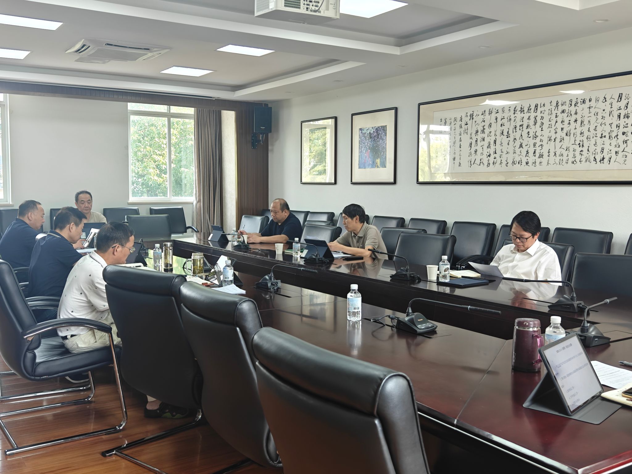 9月4日,出版社党委理论学习中心组在三楼会议室召开会议,集中学习习近平总书记在纪念中国人民抗日战争暨世界反法西斯战争胜利80周年大会上的重要讲话精神。党委书记廖卫鹏主持会议。