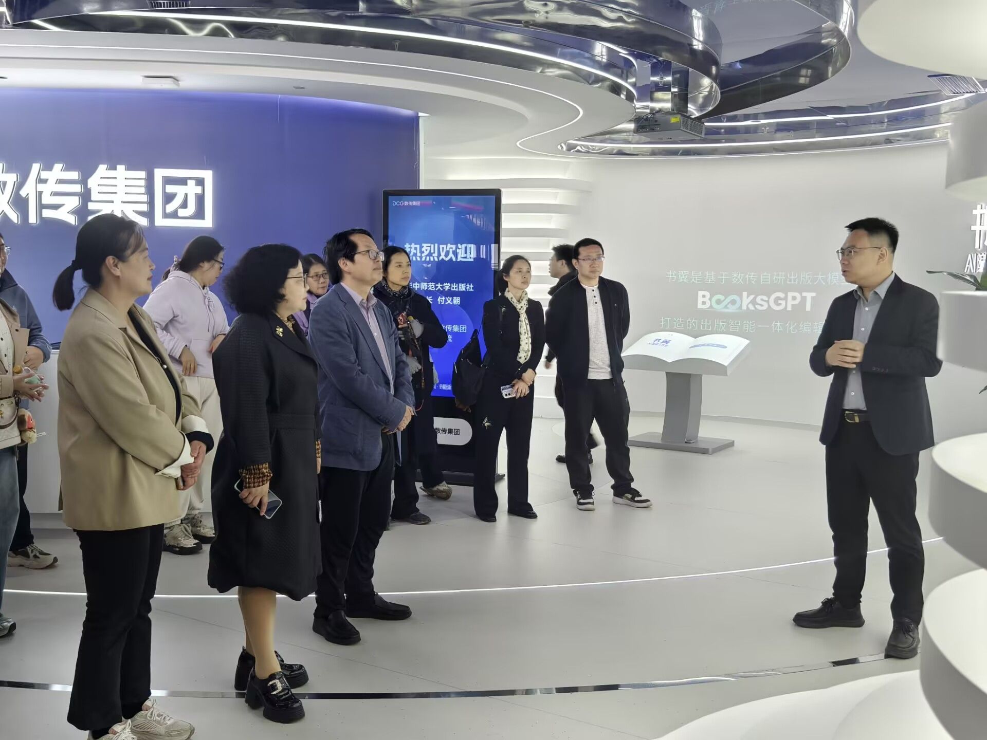 为了贯彻落实中共中央关于“推动文化建设数智化赋能、信息化转型“的决策部署,深入了解人工智能技术在出版行业的最新应用,推动我社数智化转型与融合发展,4月2日,我社一行20余人在社长兼总编辑付义朝的带领下赴数传集团(武汉理工数字传播工程有限公司)参观调研。